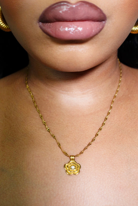 Jolie 17 Hibicus Floret Long Necklace 18K Gold Filled Tarnish Free Jewelry